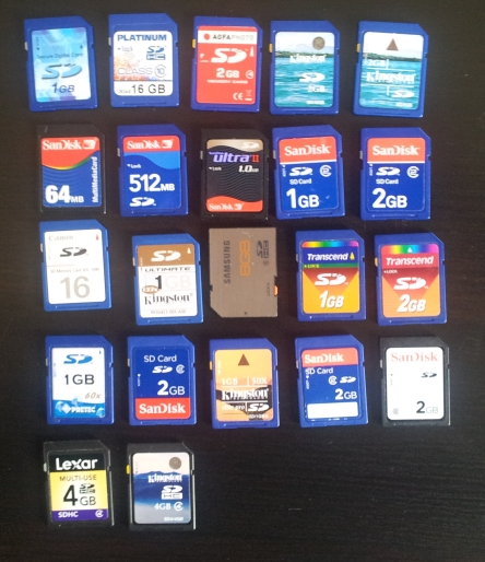 We use a lot of SD cards here. Some for testing, some for work, a lot of them for bundling with our devices. So I have a small and nice collection of different older cards used for testing compatibility.